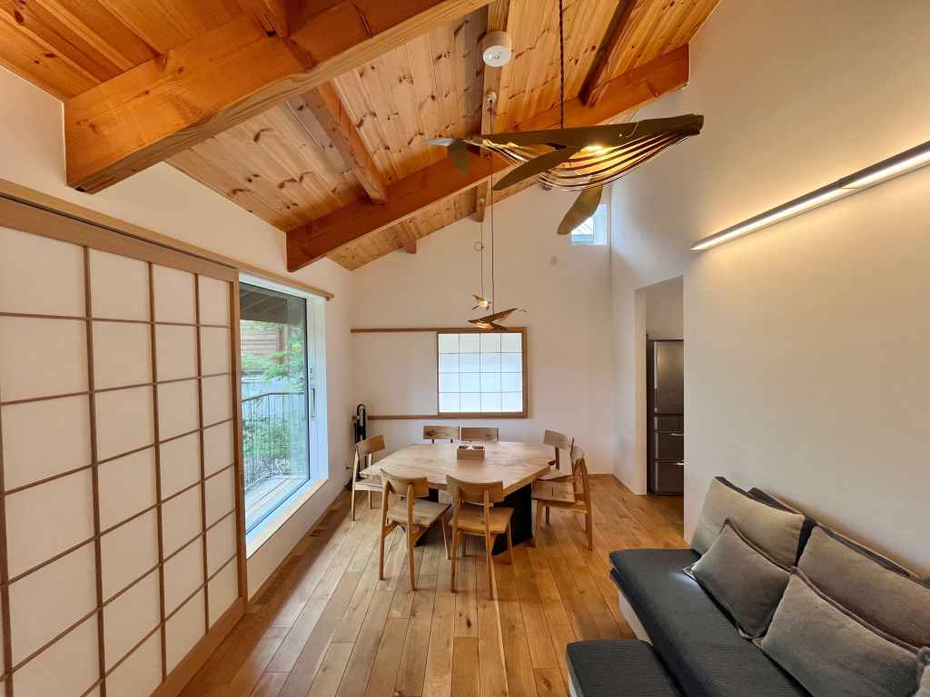 KUMA stands proudly along the Hirakawa River. Enjoy breathtaking views of the Northern Alps. Perfect for a group of family and friends!