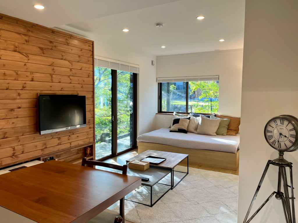 A stylish house nestled in a serene forest by Aoki Lake. Please make sure to have your own car to get around!